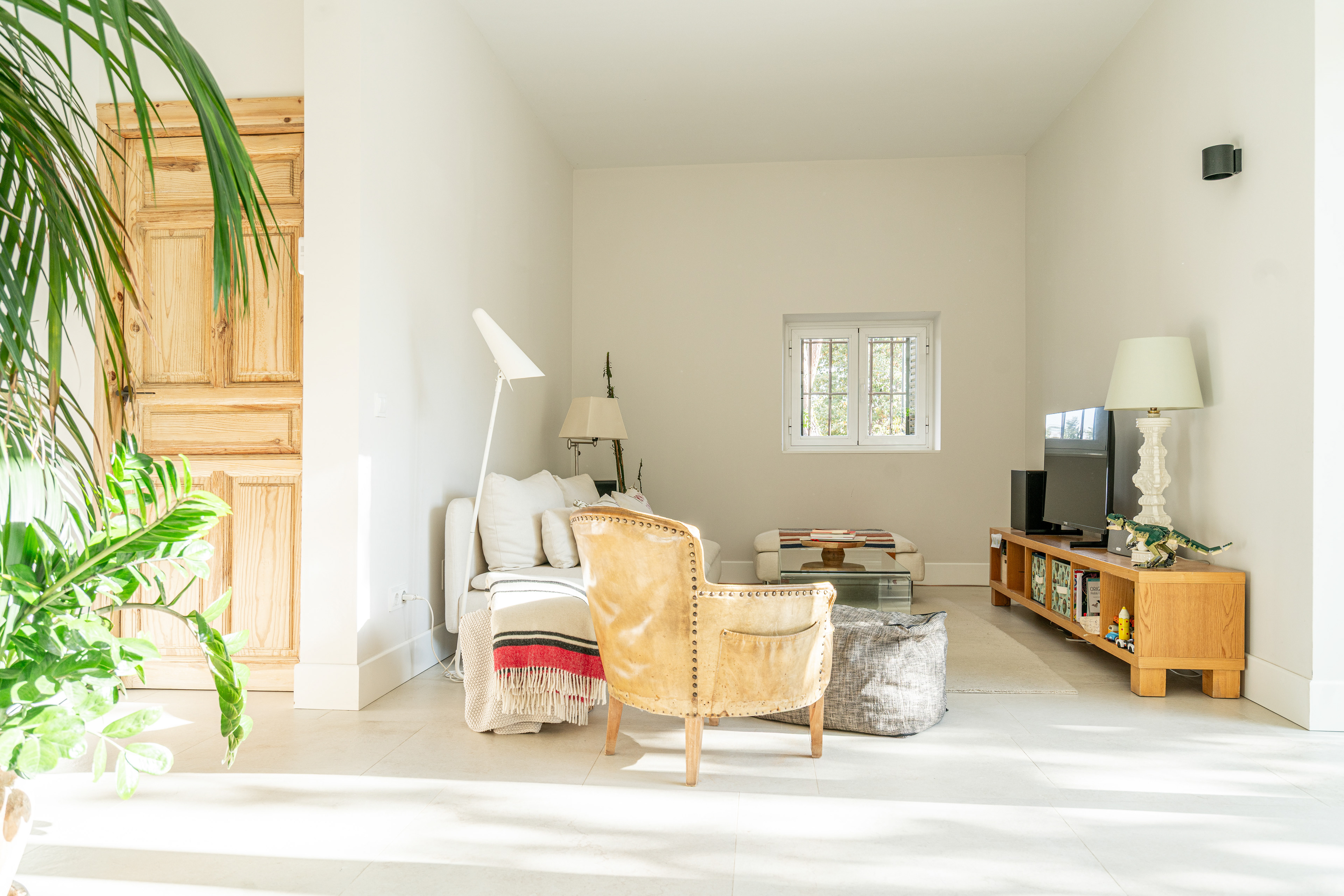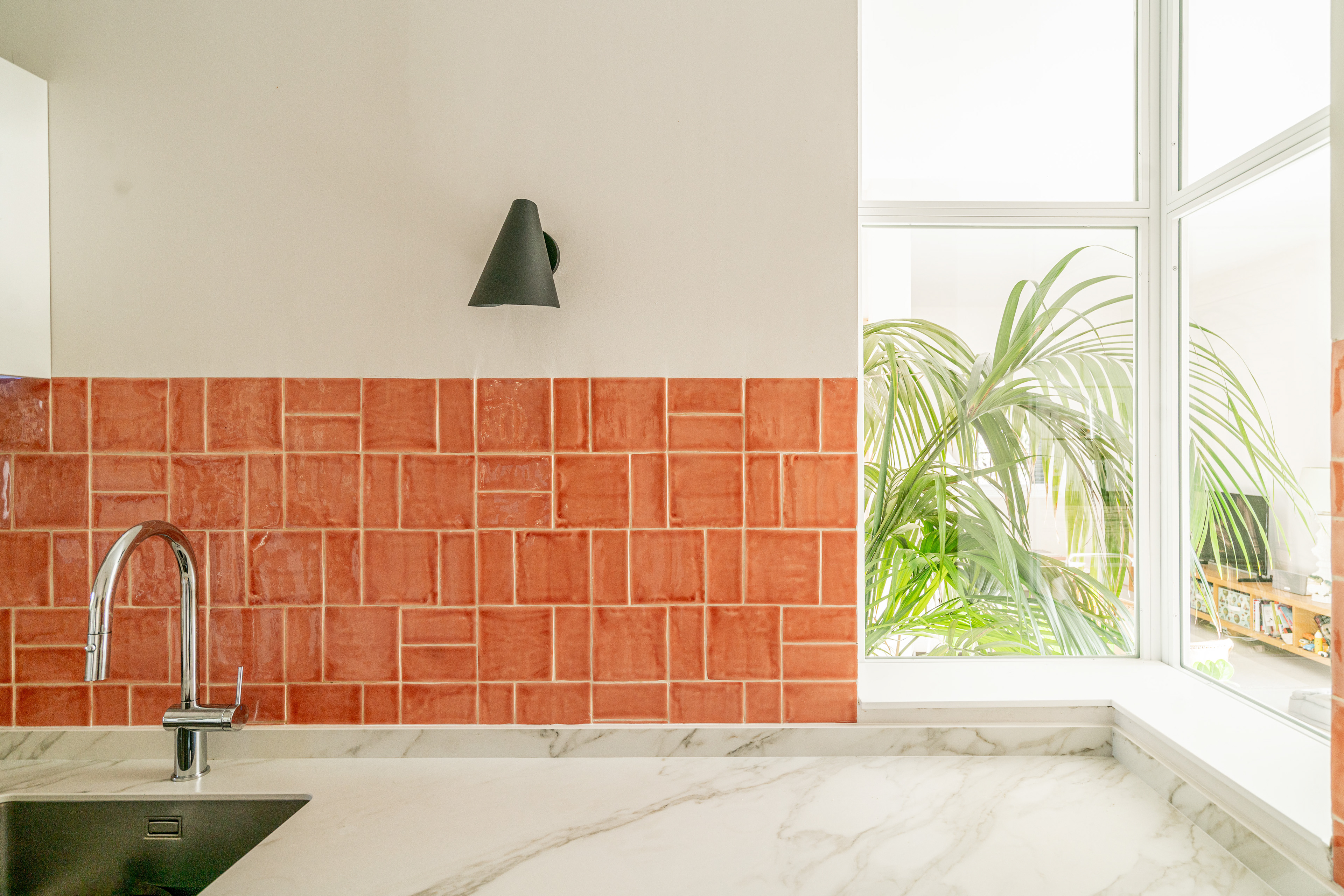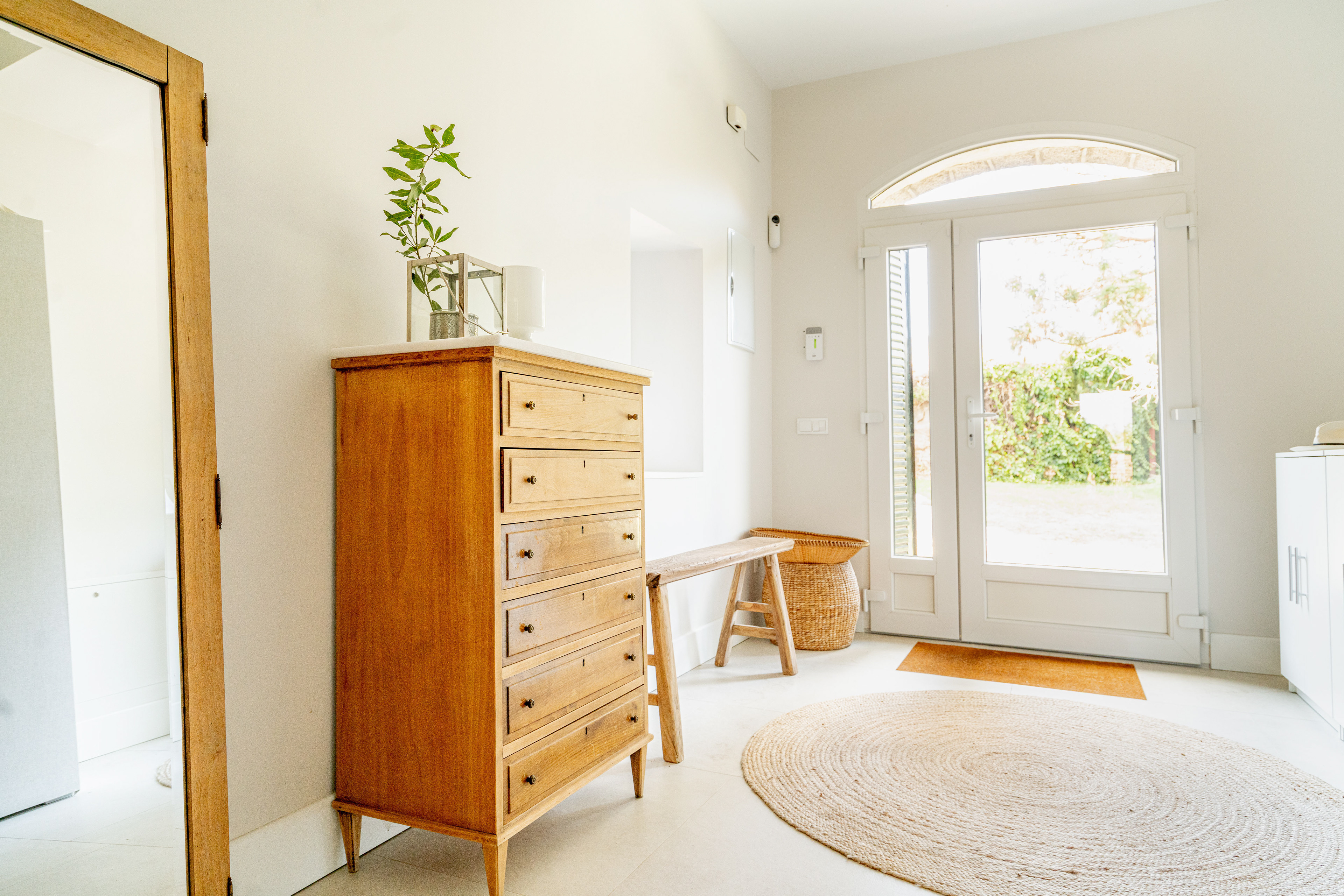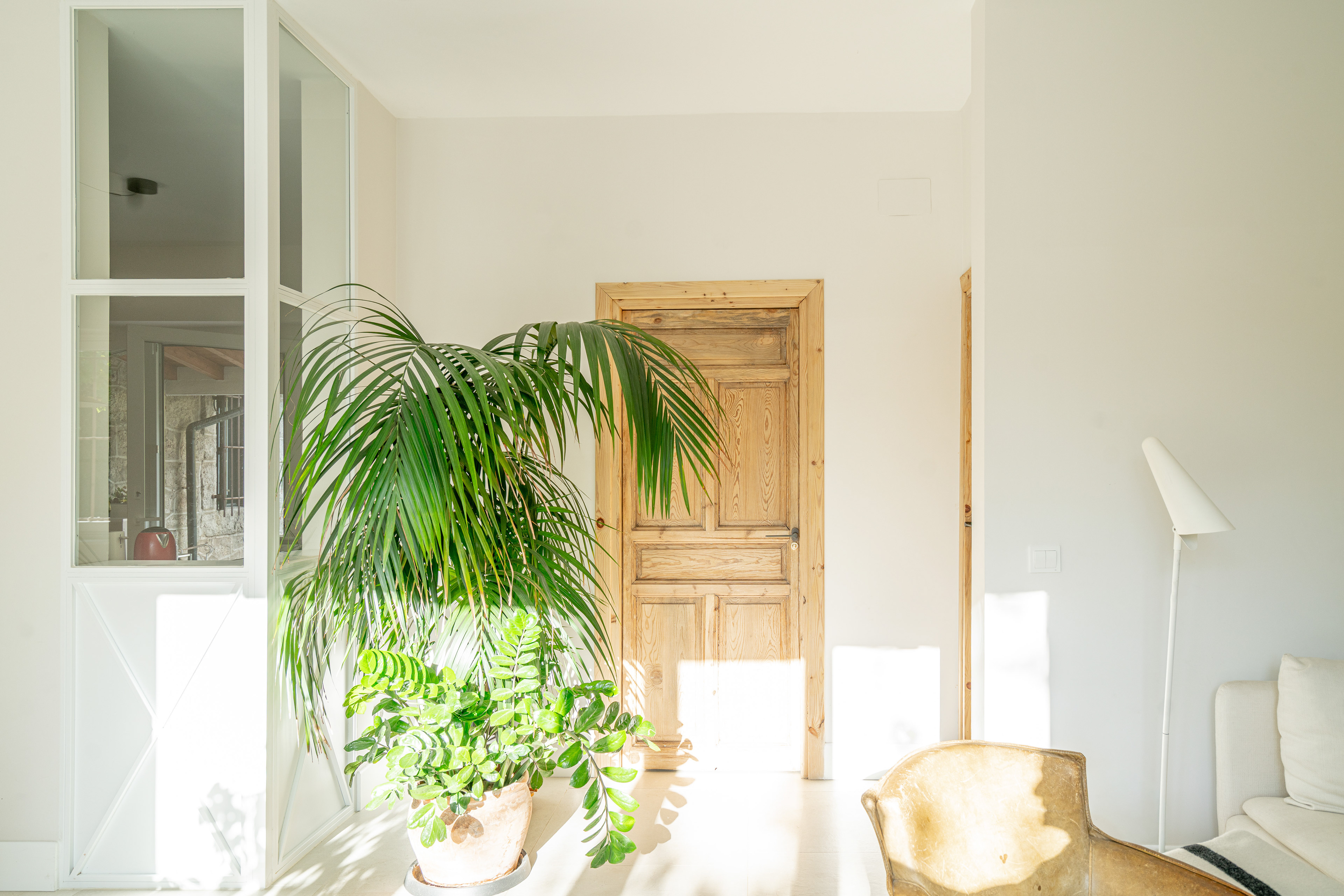 Para acentuar la magia de la luz uno de los recursos usados en esta vivienda fue romper muros con cristaleras. Estas juegan un papel importante a lo largo de todo el día. Mientras que por la mañana la luz cálida del este se cuela en el salón por la vidriera, es por la tarde cuando la luz cálida del suroeste entra en la cocina a través de esa misma vidriera.