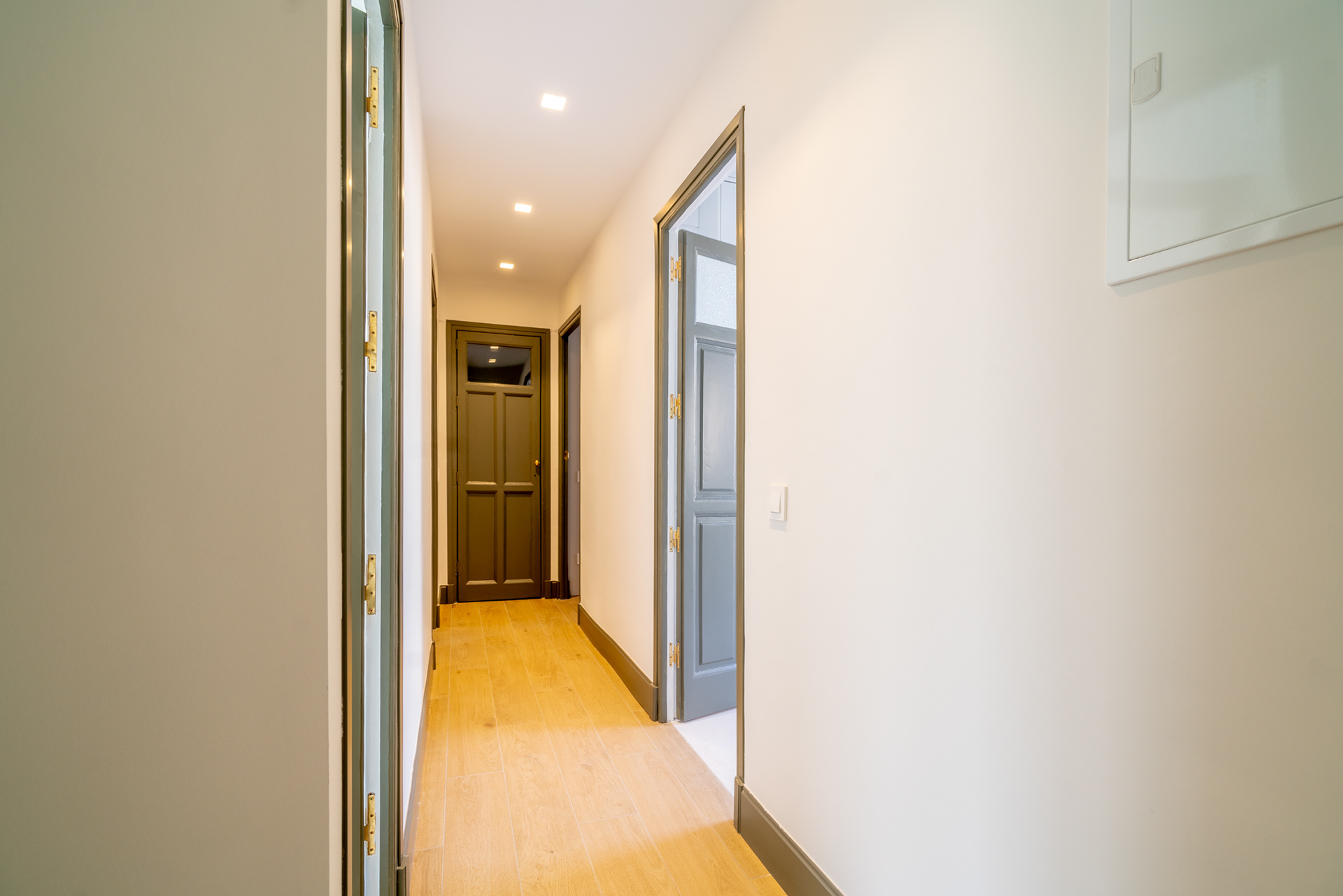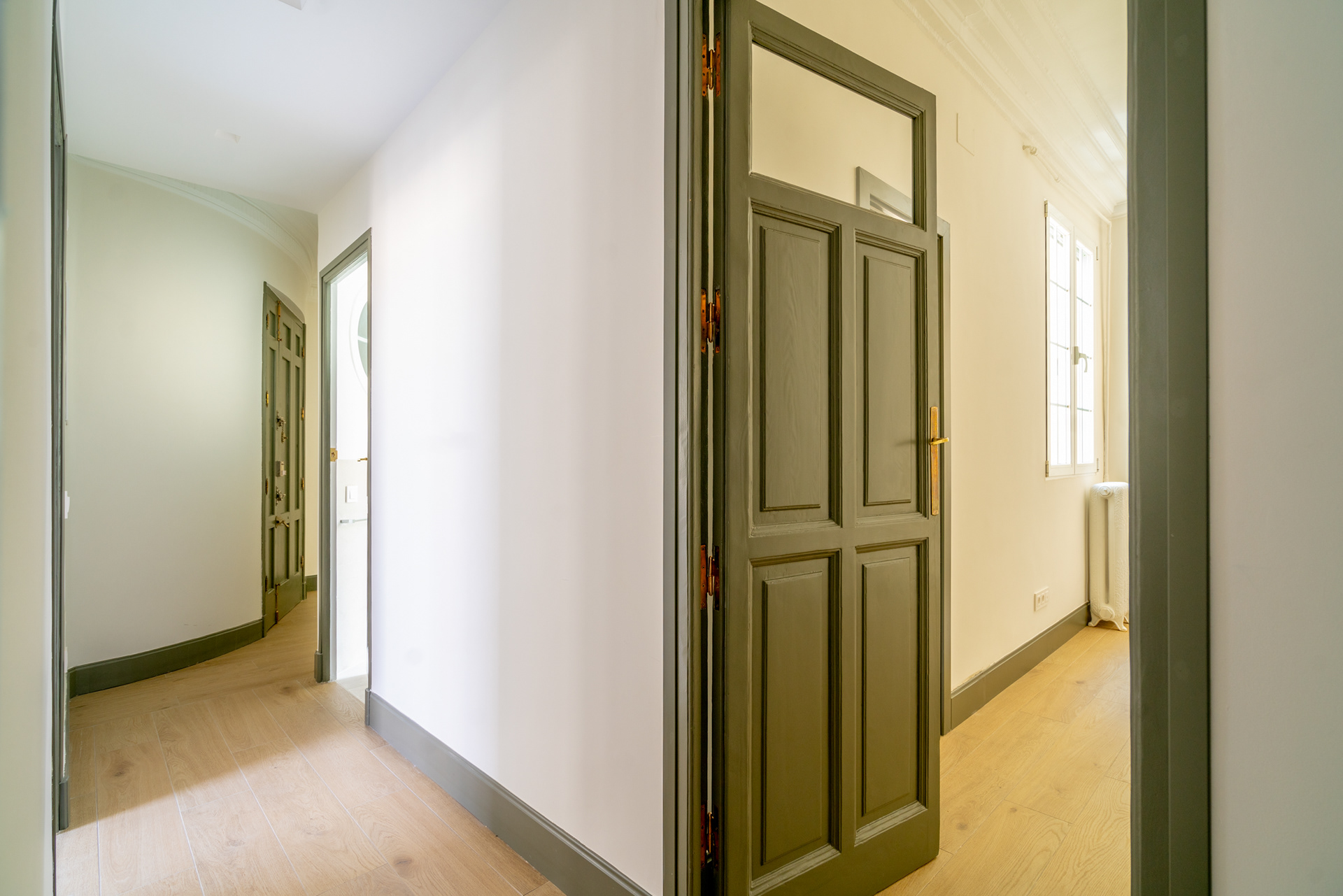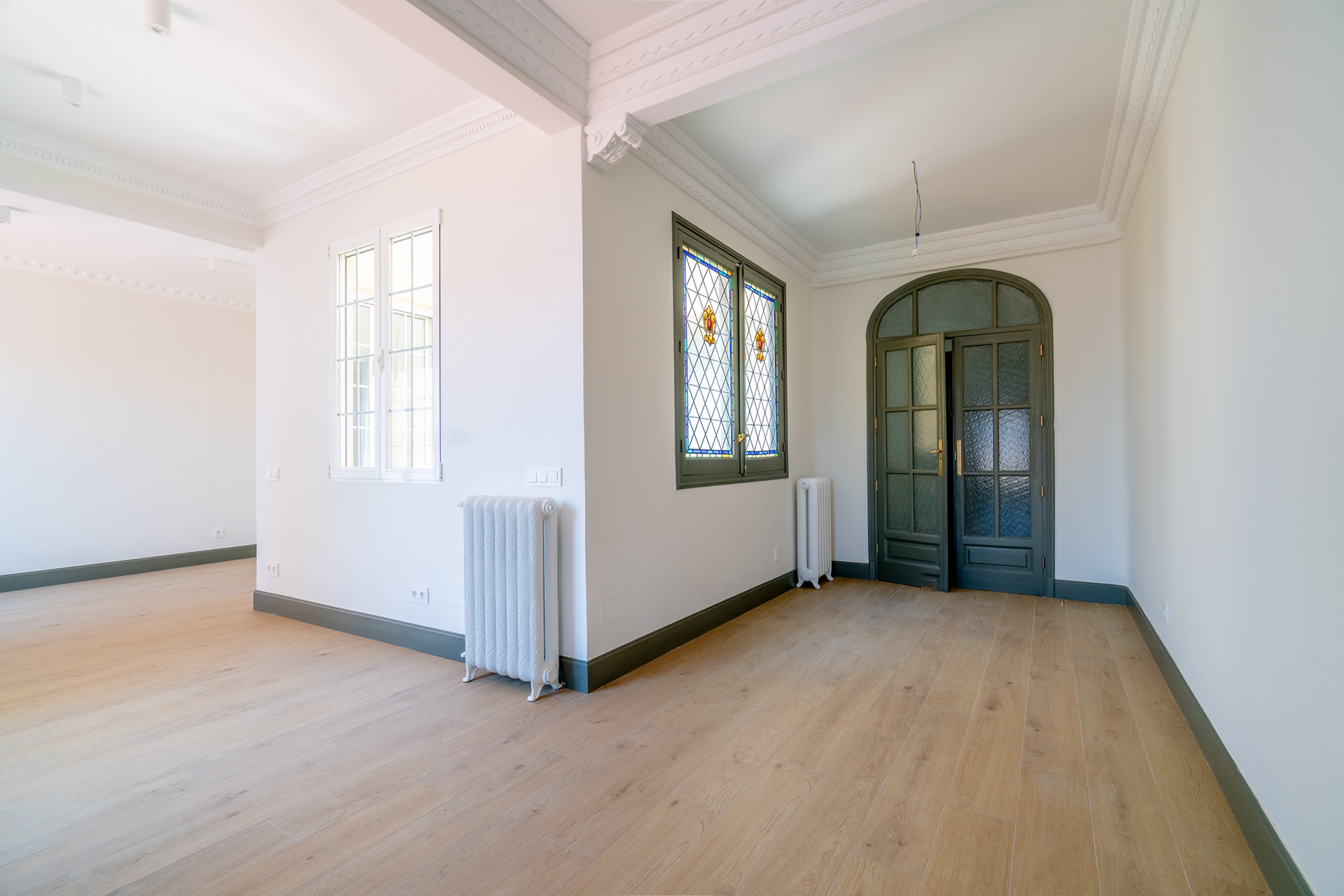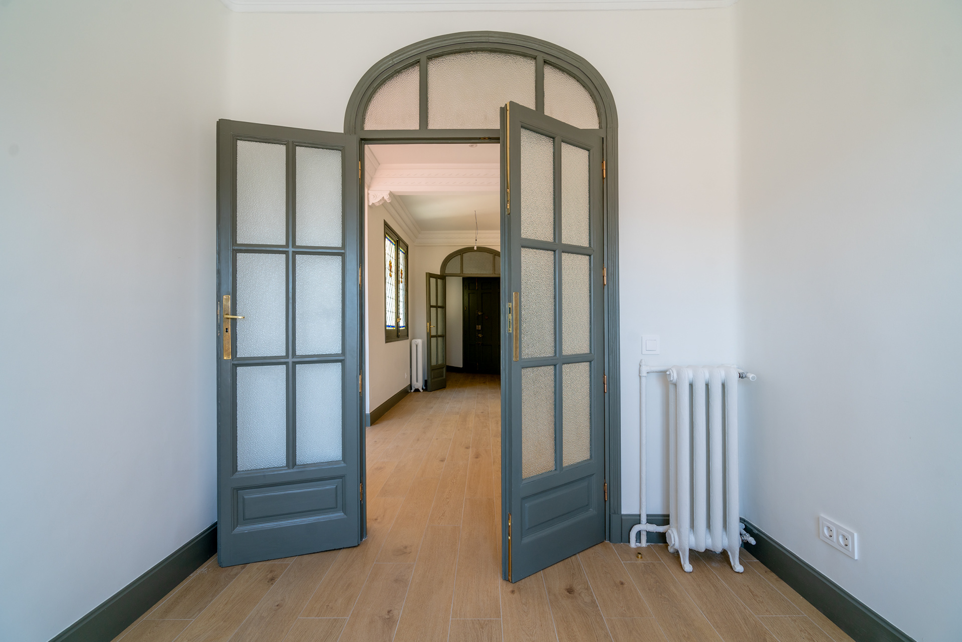 Fue un proyecto muy ilusionante y artesanal. Encontrar quien restaurase puertas, vidrieras, manillas de latón, molduras de escayola, etc… fue el mayor reto, así como integrarlo con materiales actuales, duraderos y sostenibles.