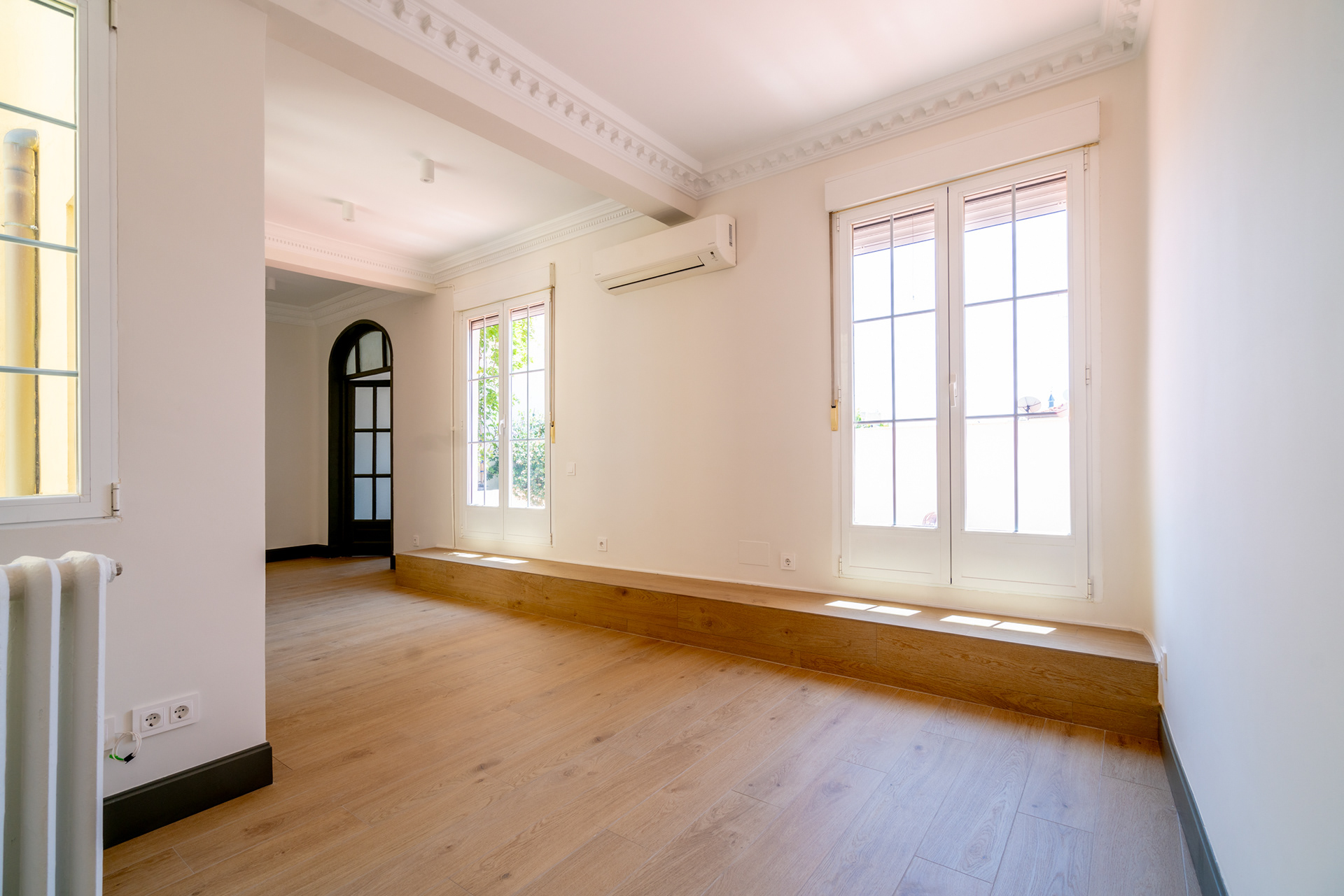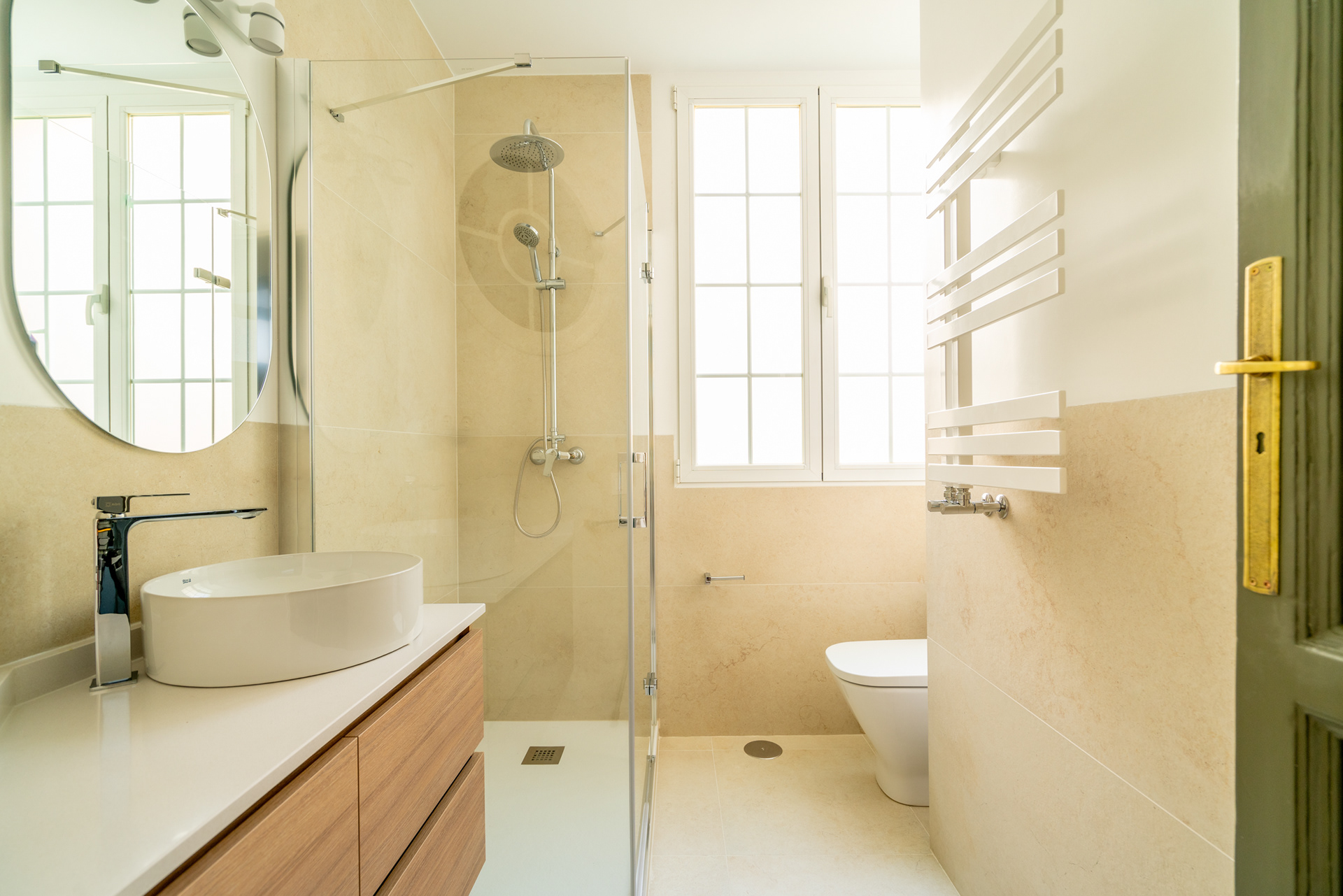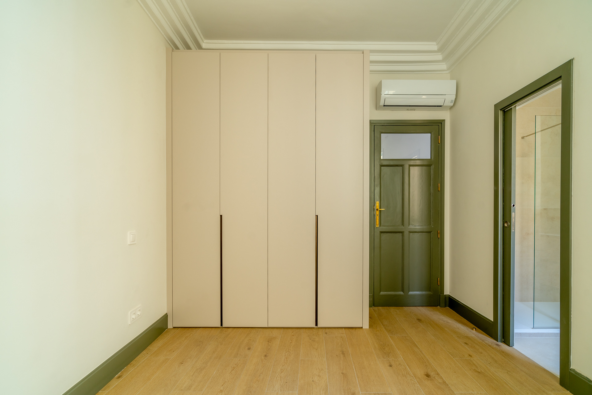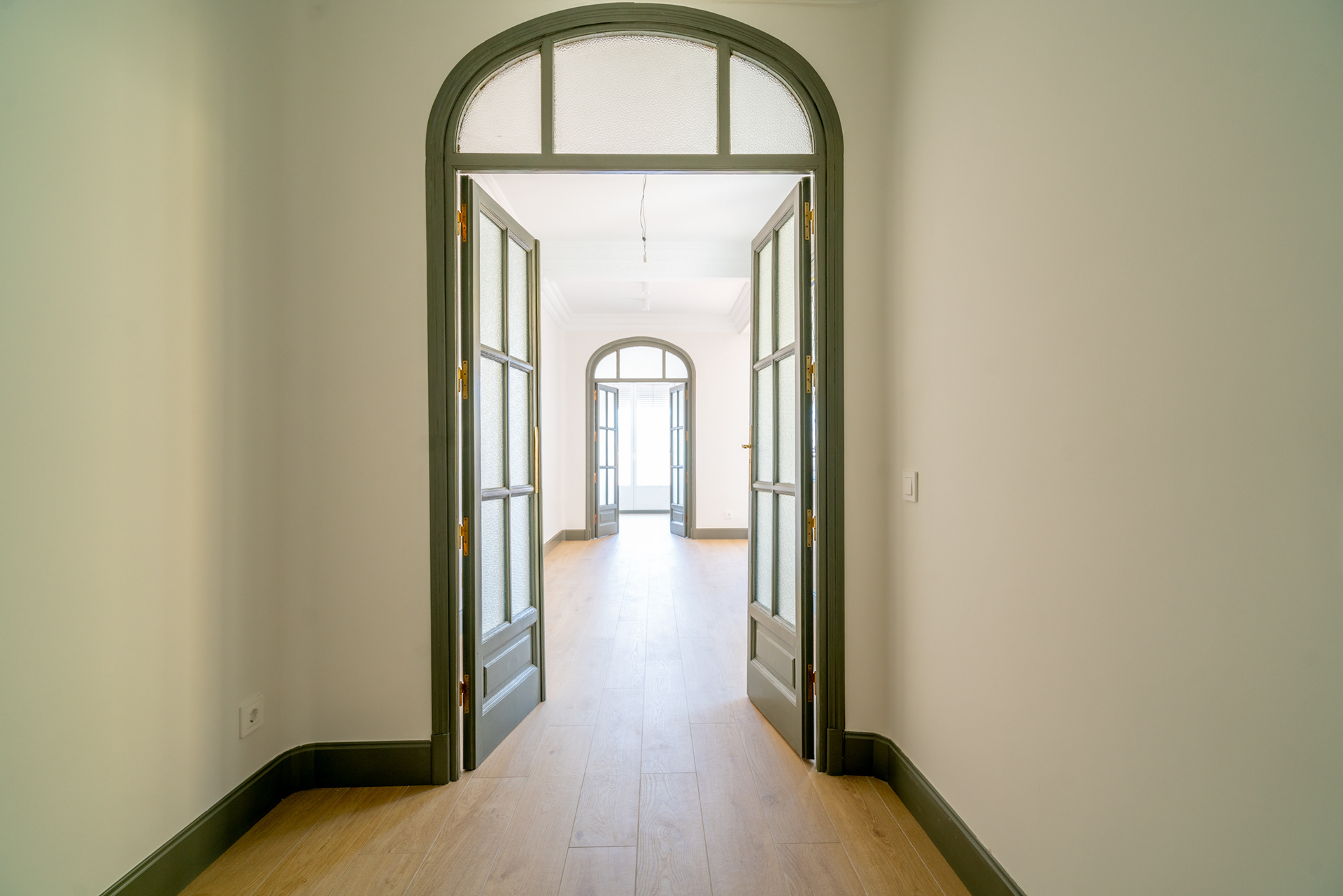 Fue un proyecto muy ilusionante y artesanal. Encontrar quien restaurase puertas, vidrieras, manillas de latón, molduras de escayola, etc… fue el mayor reto, así como integrarlo con materiales actuales, duraderos y sostenibles.