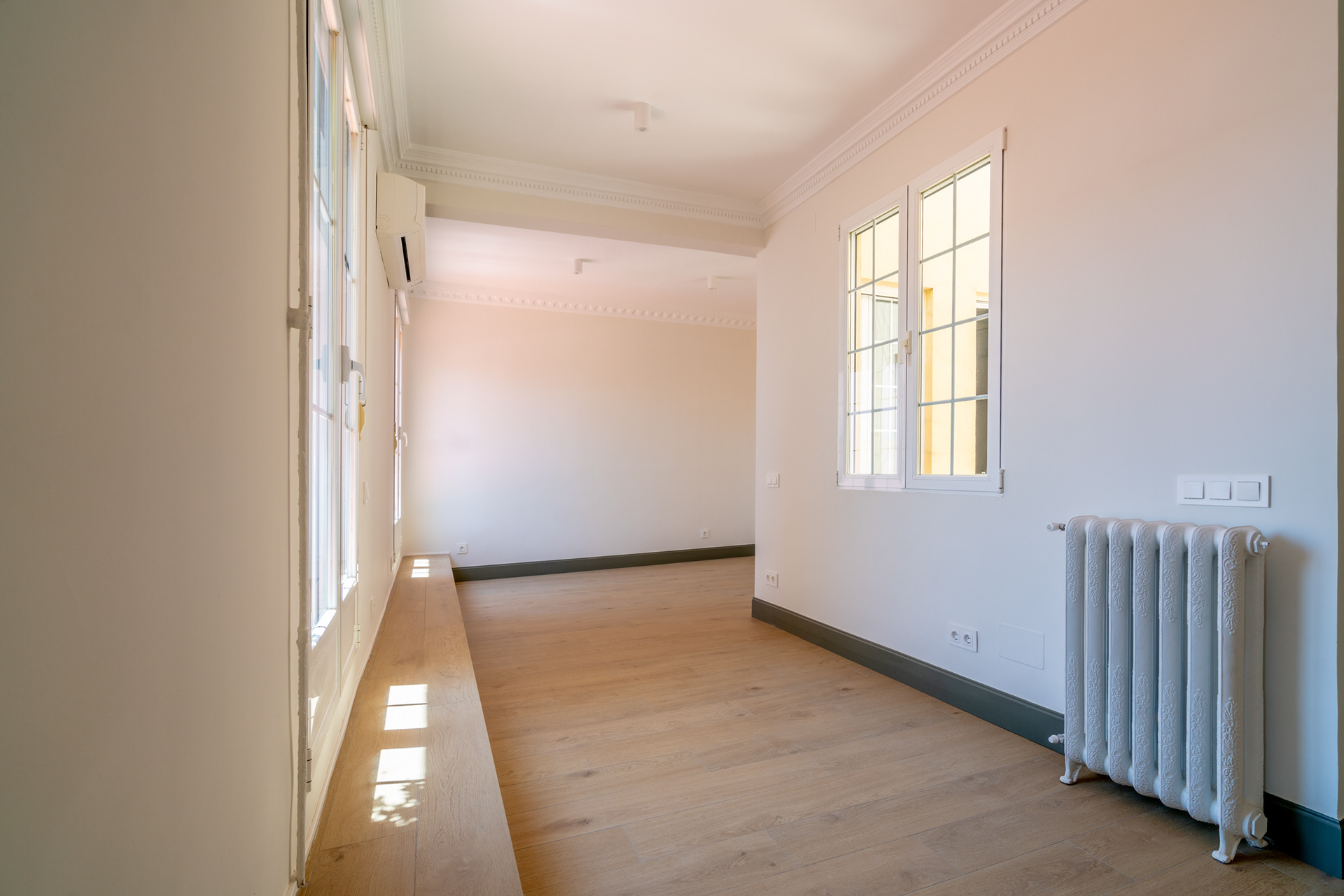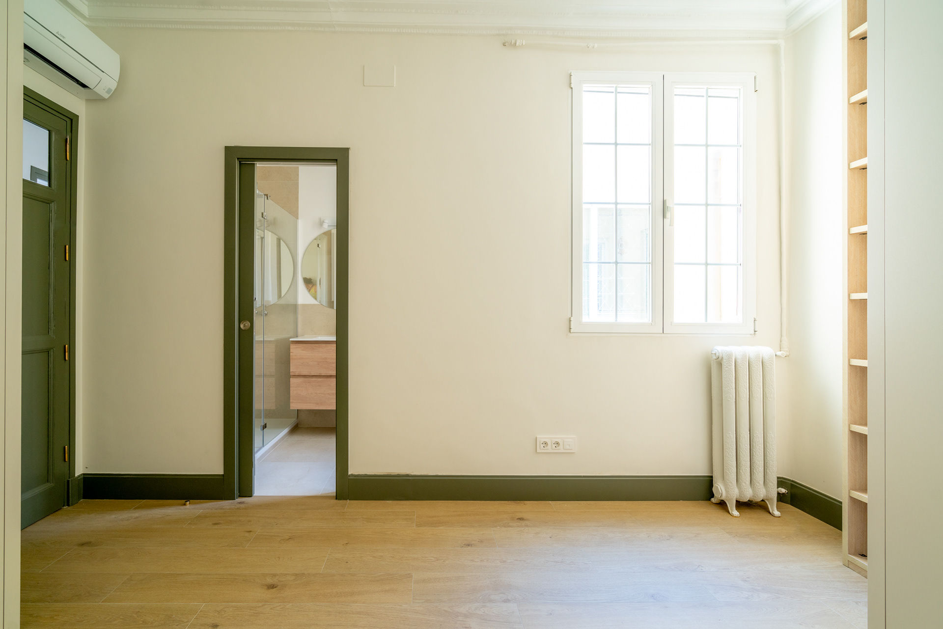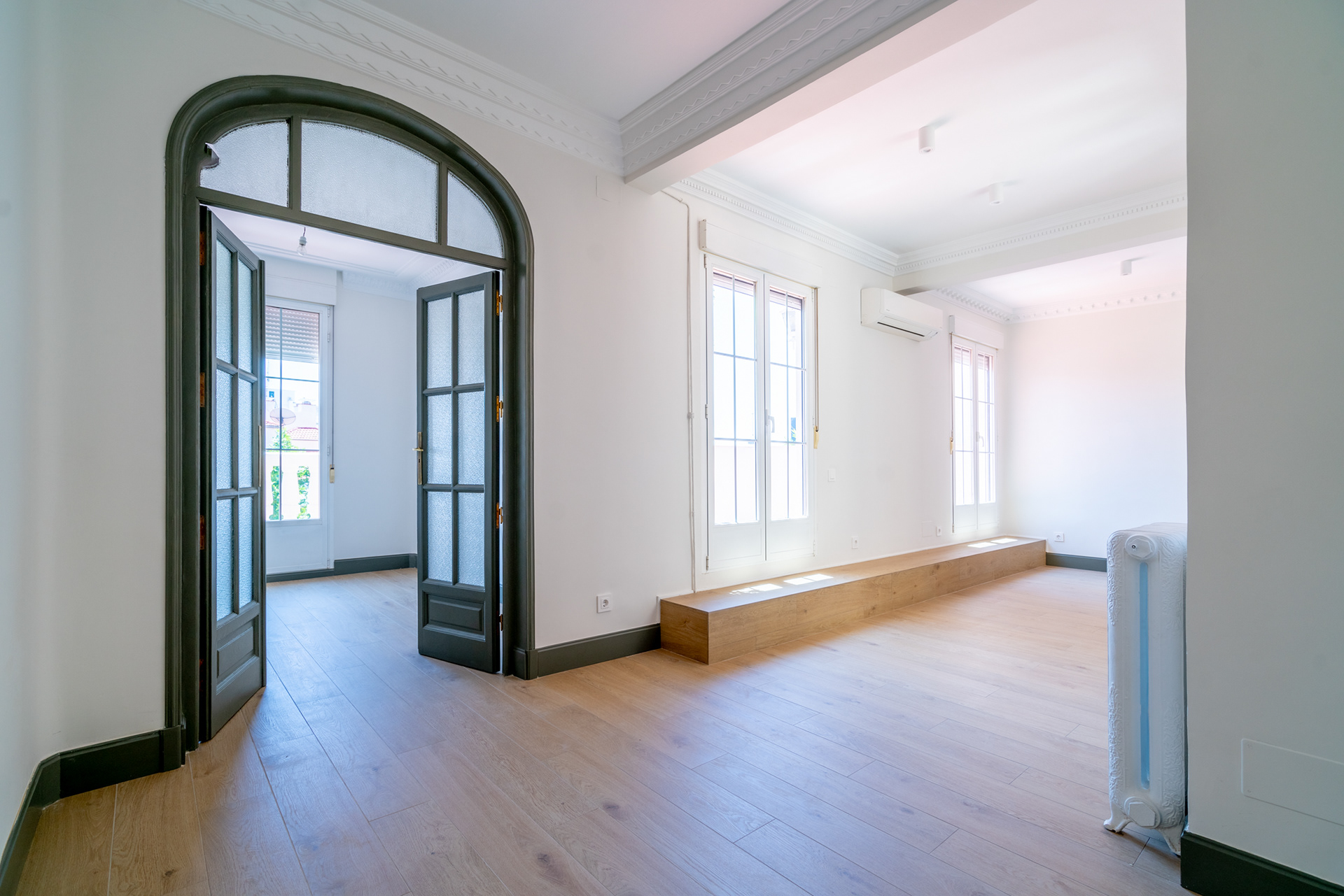 Había varias remisas en este proyecto, una de ellas era conseguir espacios amplios y luminosos. Otra fue la de mantener todos los elementos originales que fuera posible para conservar la esencia y el carácter del edificio, tan marcado y presente en las zonas comunes.