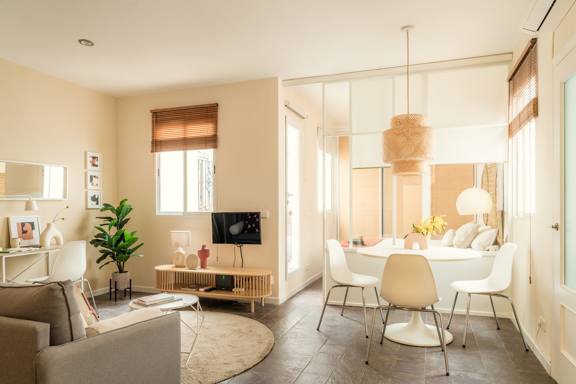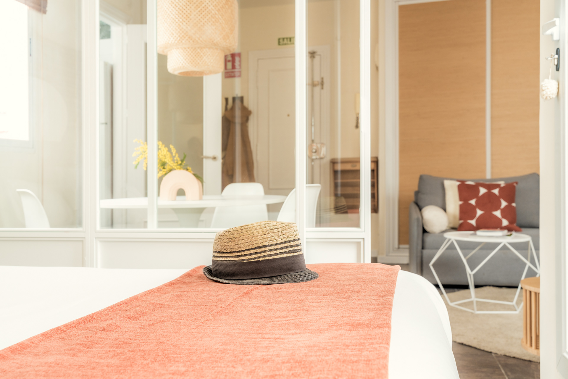 Se trata de una vivienda de 45m2 situada en el centro de Madrid para una persona que viaja bastante y teletrabaja de vez en cuando.