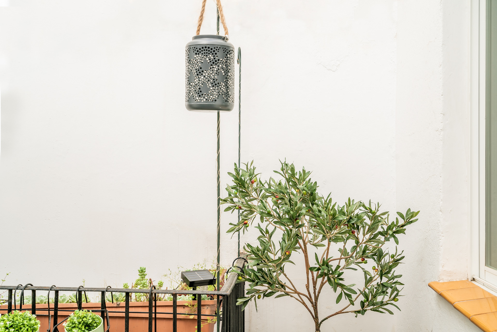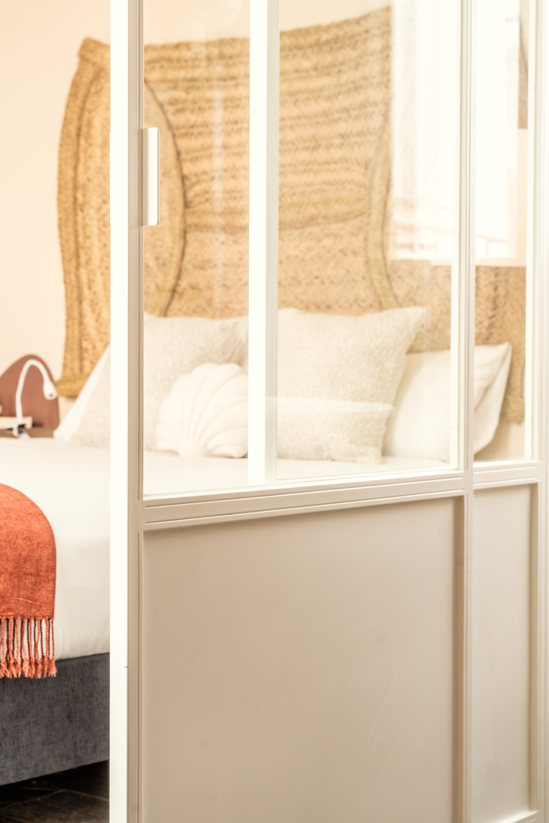 Era importante aprovechar al máximo la luz y a la vez mantener la privacidad del dormitorio. Para ello elegimos un cerramiento de hierro y vidrio con un estor que permitía regular la visibilidad e intimidad.